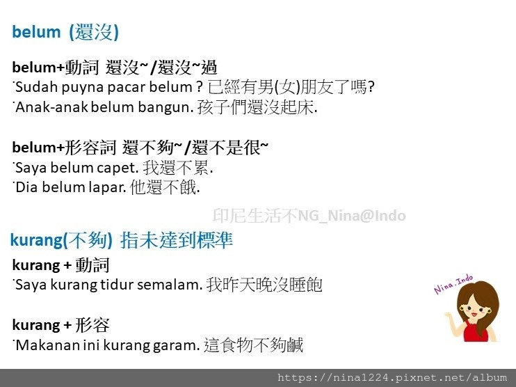 [印尼文]文法_否定的用法 tidak VS bukan VS belum VS kurang-1_印尼生活不NG_Nina@Indo (1).JPG